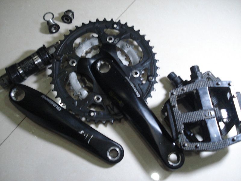 原装车升级换下来的。。。使用300公里以内。。拆脚踏的时候刮了点印子。。带花键中轴。。防水螺丝。。拆车vp果冻脚踏一起80块.。。不接刀了。。河西阳光100附近。。。成色见图。。。