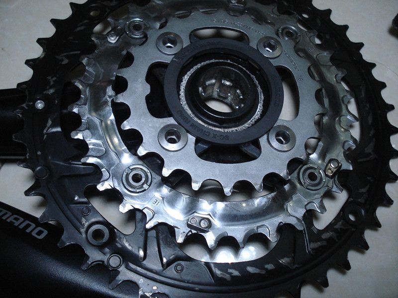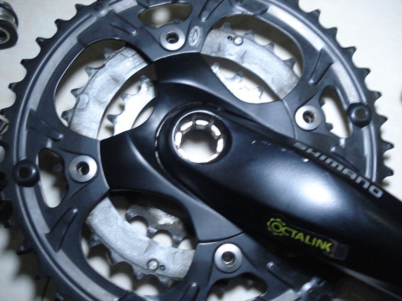 出拆车SHIMANO M422牙盘一个带花间中轴