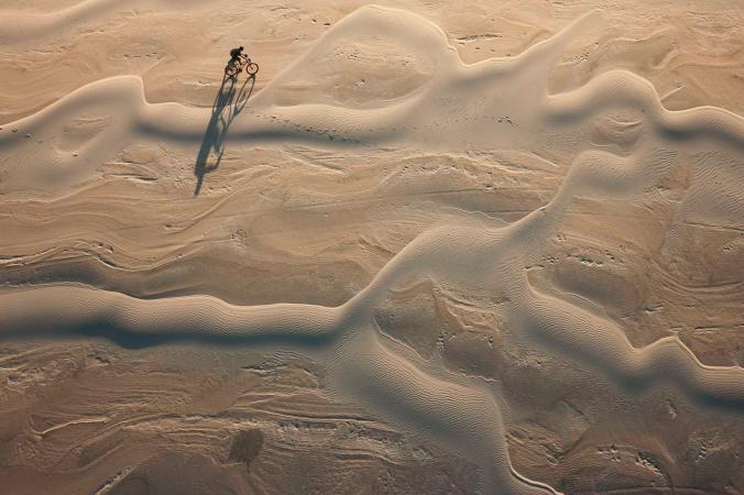 巴西马拉尼昂州Len?óis Maranhenses国家公园里一位孤独的骑行者。 图片?国家地理/GEORGE STEINMETZ