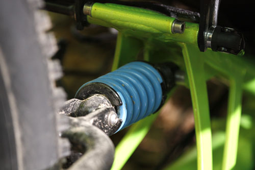 因为独立悬架的特性,即便是三轮车架也不会重心侧倾。同时车架底盘是也一大亮点,Scorpion fs 26使用No-Squat避震系统设计,No-Squat在提供良好的车架避震的同时还可以最大可能的避免卸力,这使得Scorpion fs 26整车的乘坐舒适性相当高,稍做改装,可以贴地飞行。