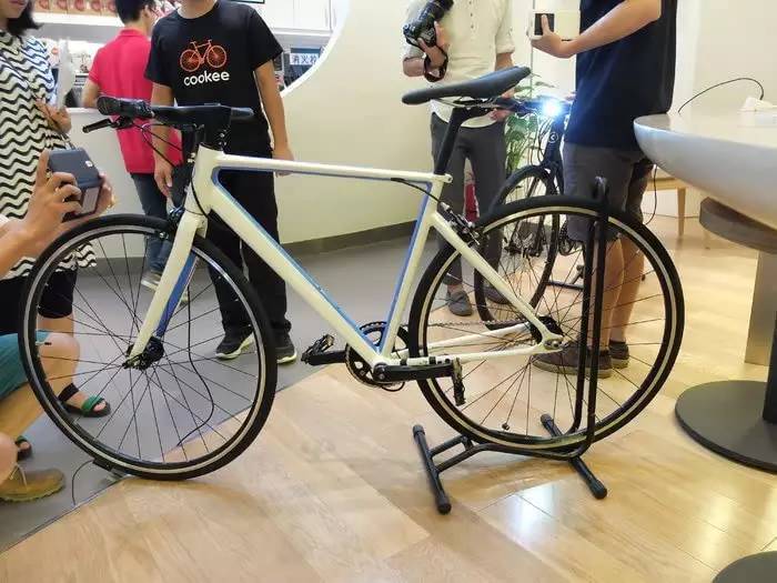 曲奇单车的外形上更偏重于运动自行车,没用复古的钢架也没用小轮径,基本上就是常见到的平把公路。吴俊斌说,这样的造型设计师最容易让非爱好者接受的,一方面复古对他们来说有可能不够搭配,如果你穿着不够优雅,那骑上一辆复古车可能整体都显得破旧了。另外一方面,大多数非自行车爱好者都对羊角把的公路车感到恐惧与排斥,平把公路对他们来说是最好的选择。