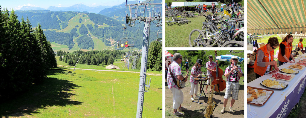 Lapierre的发表会焦点是在电动单车上,当这个段落进行时,我的注意力在另一个电力驱动交通工具上 - Morzine的1500匹马力登山缆车 - 带上DH Team,Lapierre世界盃车队的武器去飙个几趟。发表会的注意力是在全山地/林道车上,因此我根本没有带下坡装备,只好很不好意思地带着半罩安全帽与近视眼镜,骑着世界盃等级的下坡车,身边还有很多在为瑞士Lenzerhaide世界盃分站準备练习的职业选手。