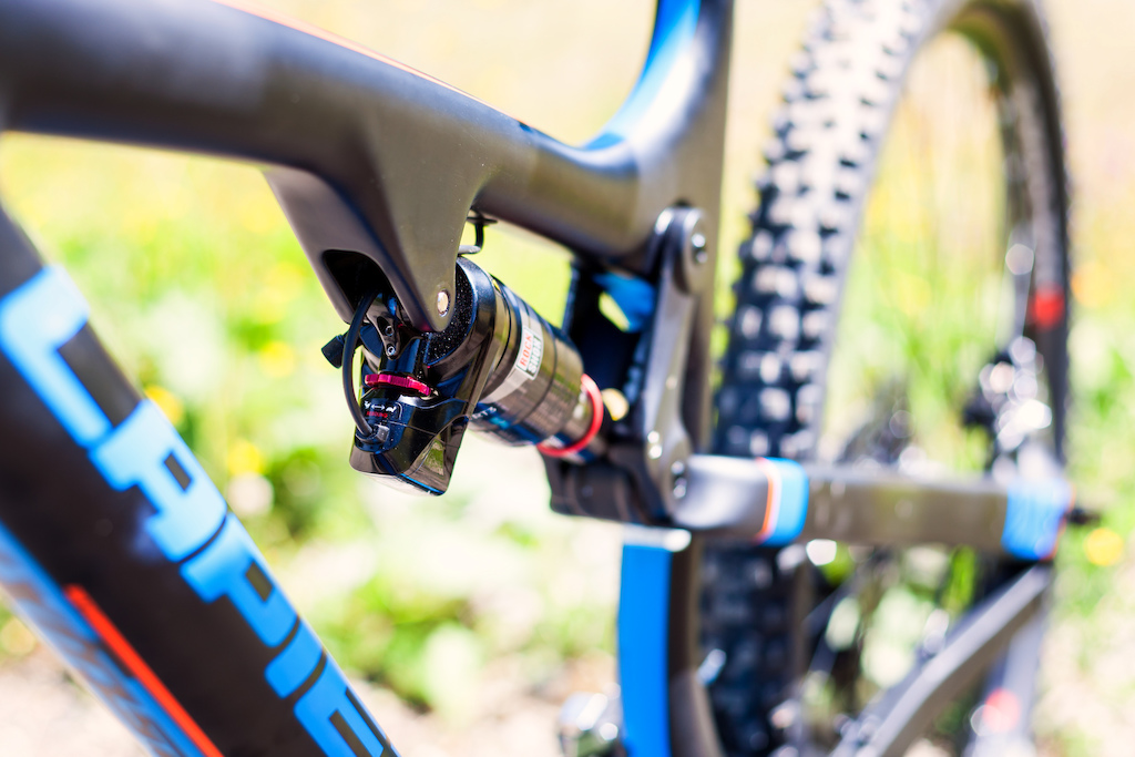 Lapierre的「Supra Tech连桿」在中段提供了和缓的渐进压缩率,在末段提昇以避免触底。后端还有挡泥板。Falco Mille photo