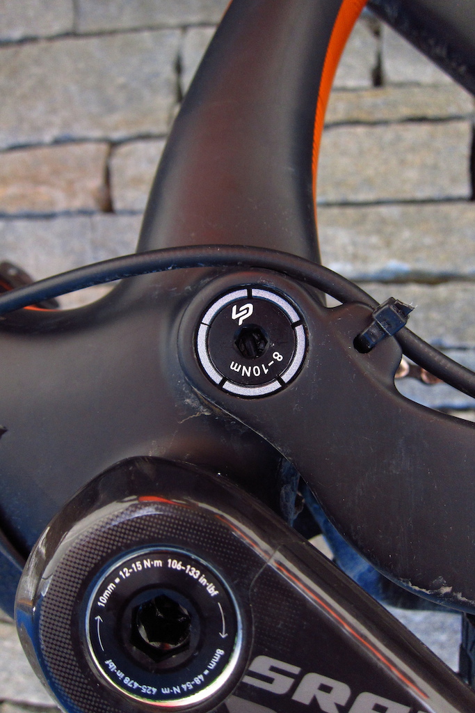 可拆换的后轴座与碟煞座整合在一块,所以车队技师能很快地改变轴距。 Falco Mille photo