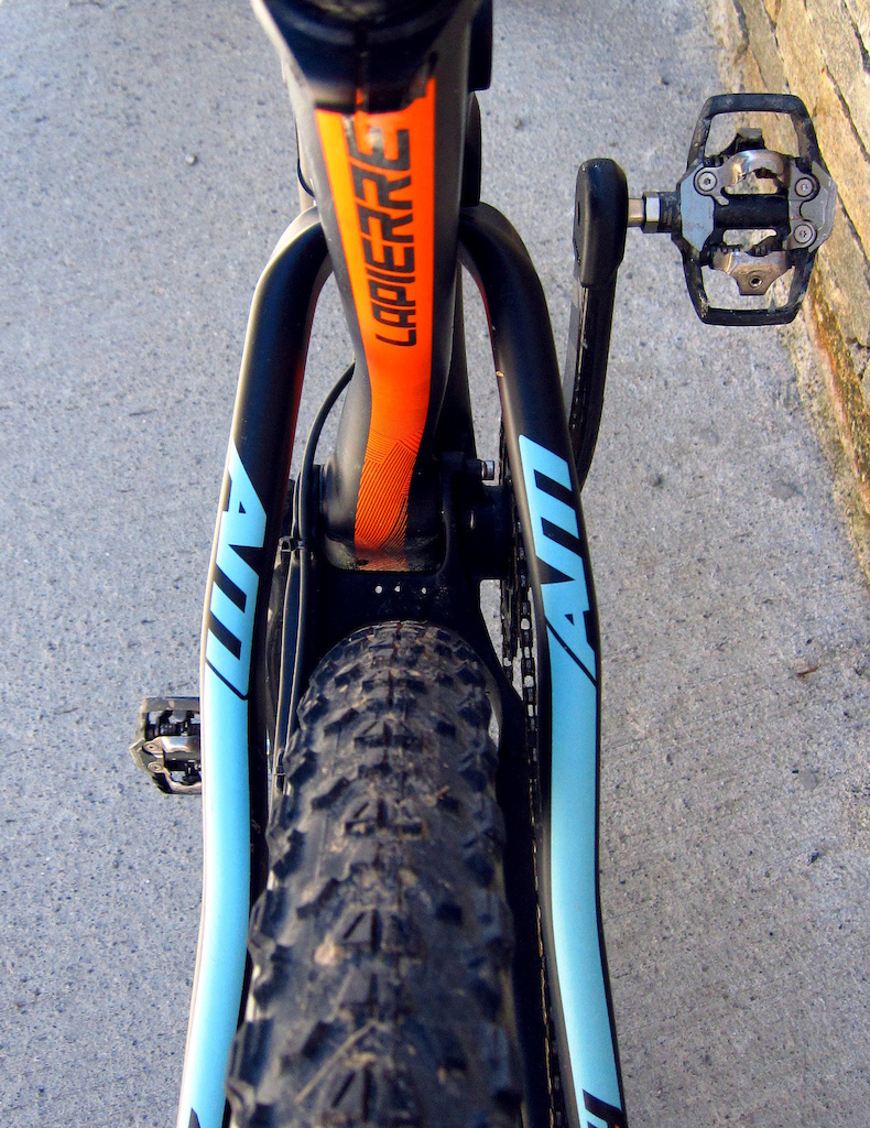 在连续骑乘过2016年版Zesty与去年的Spicy后,我很确定在踩踏与操控表现上,新版Zesty车架有了长足的进步。我试乘的顶级827上配有非常棒的零件,像是Nico-签名款铝合金车把龙头、SRAM XX1与X01混搭传动。这些都让它表现出菁英组竞赛等级的操控性,完全不会只是对应「顶级」车款而配置虚有其表的高单价零件。头管66.5度比目前enduro界流行的角度还要大一点,这对那些在林道上想要取得爬坡与下坡能力平衡的骑士是个好消息。74.5度立管角度,这使骑乘者重心置中于车架上,除了助于弯道中的平衡性,还能将爬坡能力最佳化。人体工学设计也有很大的进步,前面有更宽的车把、中段车架有更大的空间容纳水壶架、后段是有点太长的后上叉。过去三年,Lapierre忽视了许多人对Zesty与Spicy过长后上叉的抱怨。新设计在车架至少瘦了30mm,但是并未牺牲后胎间隙空间。