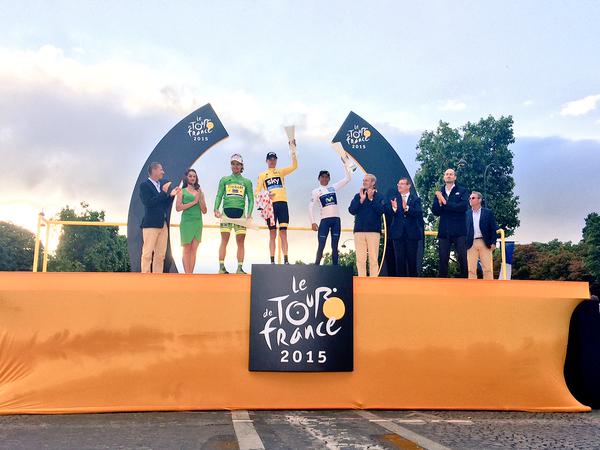 在第20站将黄衫成功守住,Team Sky在最后一站喜迎胜利到来,全队特别换上特殊的黑黄战袍,以庆祝Froome获得2015年环法大赛黄衫荣耀,Froome今年不仅获得黄衫,同时也将圆点衫一併拿下,让他成为环法史上第六位在同年度「总成绩与登山积分」皆称王的车手,环法首次发生此情况是在1938年的Gino Bartali,他在1948年再度完成此成就,1939年的Sylvère Maes是第二位拥有该战绩的车手,Fausto Coppi在1949年与1952年也完成此成就,Federico Bahamontes则是在1959年,「食人魔」Eddy Merckx则是1969-70连续两年制霸,Froome是环法进入21世纪第一位在「总成绩与登山积分」皆称王的车手,相隔45年后,这项纪录再度重现!同时Froome也是第2位获得圆点衫的英国车手,上次英国车手在巴黎穿上圆点衫的车手为1984年的Robert Millar。