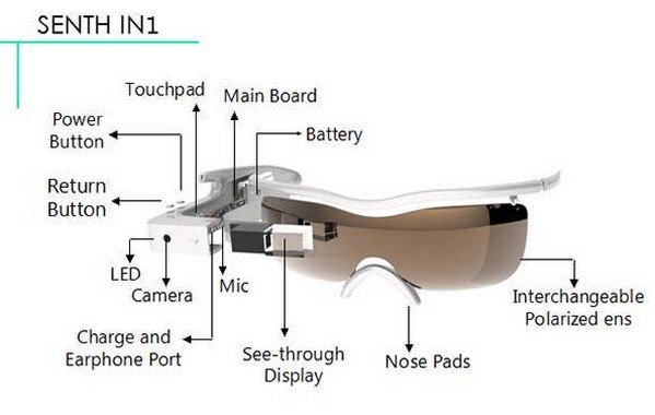 单从外观来看,Senth IN1 感觉上就像是一款同时结合太阳眼镜及 Google Glass 于一身的智能眼镜,当中除配备了一个 1.2GHz 双核处理器、1 GB RAM 及 4 GB ROM 外,同时更内置了一系列感应器,比如有 GPS、陀螺仪、加速计、磁力计、气压计及感光器等,然后可以在其 16:9 及 800 x 480 解像度的萤幕上显示出各种踩单车时的数据。