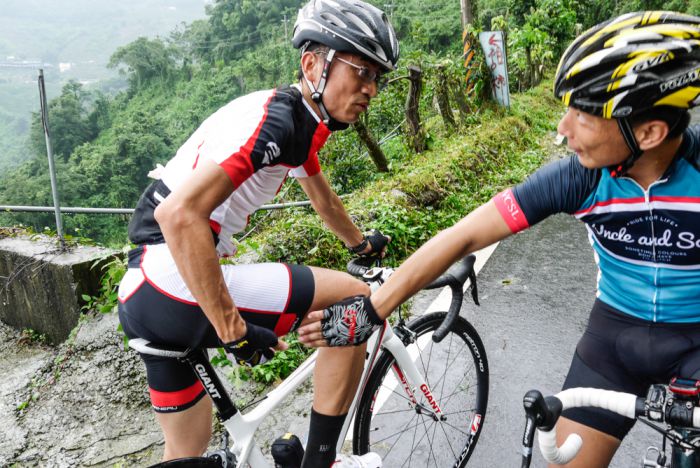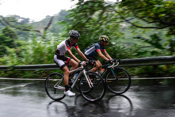 训练营当天其实有锋面经过,在气象局天气预报的观测下,预计在早上不会遇上大雨,但山区气候多变是一定要特别注意的。虽然没有大雨,但大雪山还是处于路面湿滑的状况,自行车运动本来就是全天候运动,基本上雨天也是需要克服的,所以开始进入湿滑路面的时候全员都要保持警戒的心,骑顺不骑快。