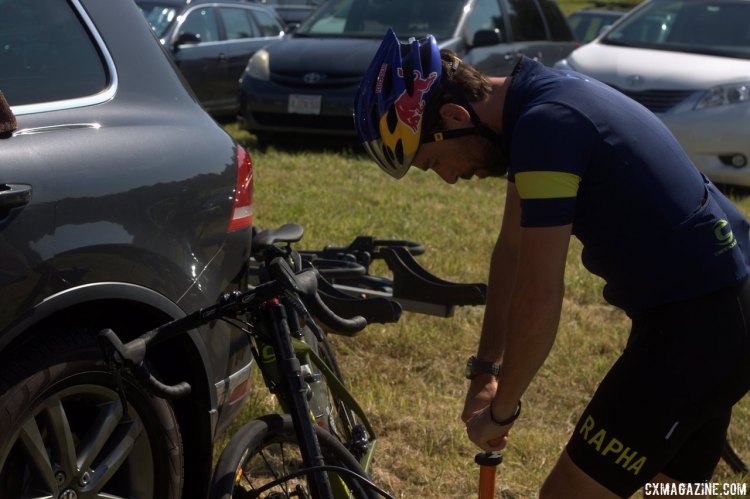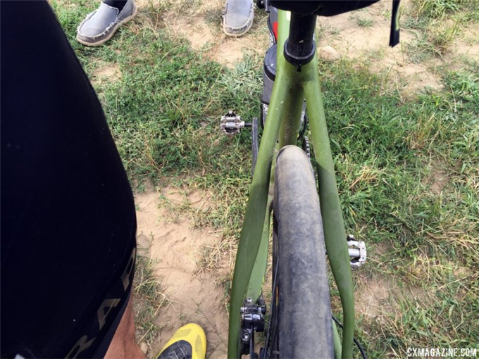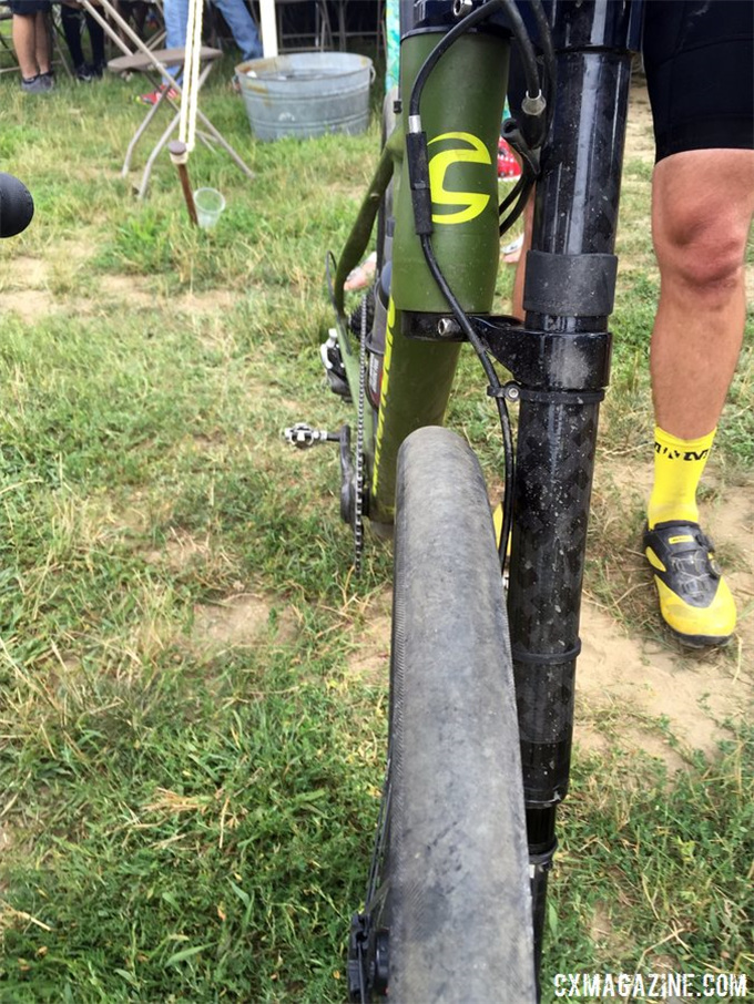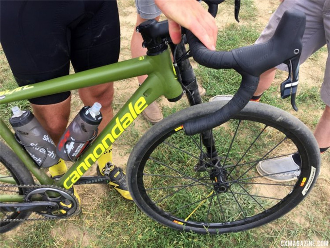 图7:Johnson使用Mavic已经有一段时间,包括Mavic的锁鞋。所以他的这辆Cannondale Slate 也配备了Mavic CrossMax 650B的轮组。