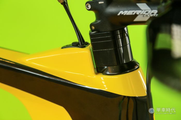 美利达造车工艺无庸置疑,三铁车更是大大地强化了空气力学设计,上、下管接近头管处都流露出了三铁车的味道。