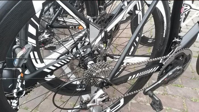 Roompot车队使用Isaac的Boson碟刹版车架和FFWD F4D轮组来搭配SRAM碟刹。使用的碟刹是SRAM的RED油压公路碟刹,看起来碟片是140m标准的,因为环比荷卢的比赛中爬坡很少。碟片标准的选择很有意思,因为赞助商SRAM实际上是160mm标准公路碟片的支持者。