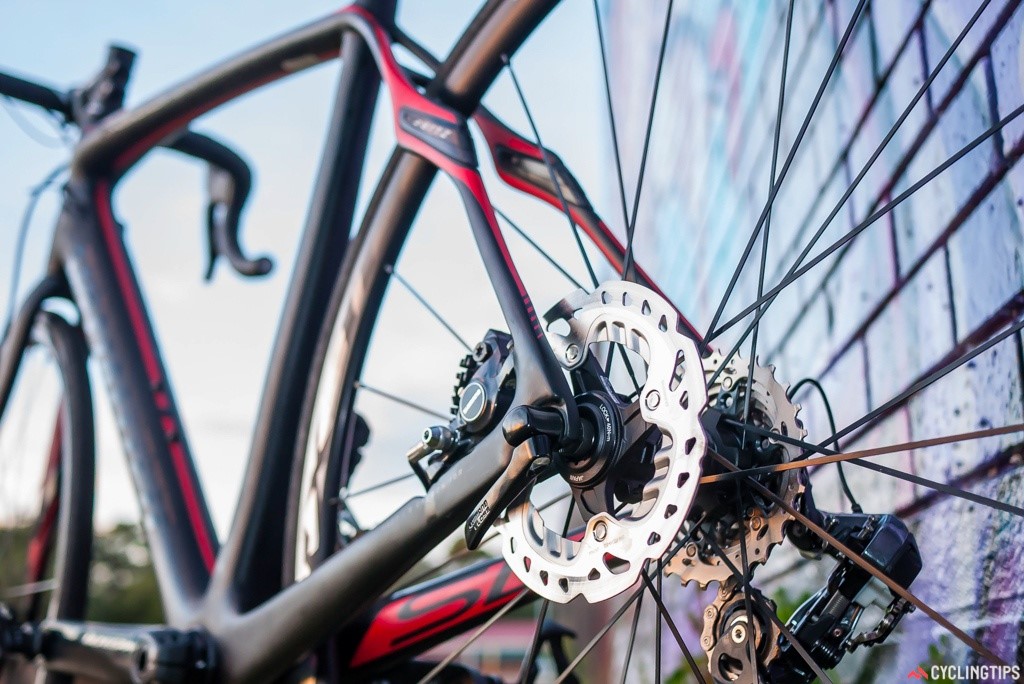 Campagnolo赞助的车队在这段时间不使用公路碟刹当然情有可原,但是背后的原因却不是“没有产品”这么简单。比赛中对于器材的限制通常都是为了竞技的公平性,现在世巡赛车队的赞助商大部分都能提供公路碟刹产品,但并不是全部的赞助商都有这样的能力,而且大部分配备碟刹的公路车都是耐力型车款,这种车型的几何设计与竞赛用车有明显区别。闪电的Tarmac碟刹版在几何设计上就和标准Tarmac车款有区别。不管怎样,碟刹车款的后花鼓预留空间设计与现有车款不同,也就是说车手使用碟刹公路的话就和中立车上的正常轮组替换服务说拜拜了,除非中立车上的是闪电的Roval轮组。