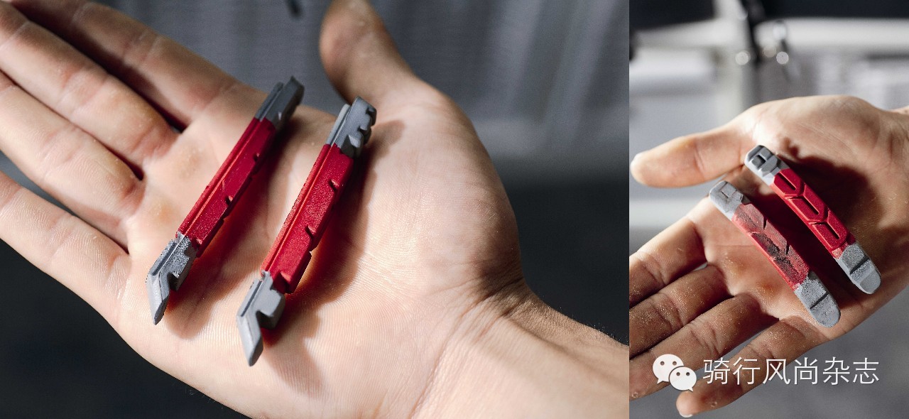 刹车块是消耗品,也是自行车上关系到骑车人安全的重要部件。所以,当刹车块磨损至一定程度,就需要更换新的刹车块。刹车块都有磨损程度的刻度线,如果已经磨损至最低限度,就要及时更换。现在各品牌的刹车为了方便拆装,都采用了抽屉式的刹车块固定方式,车友只要准备内六角扳手,一块要更换的新车块,便能自行更换刹车块了。从图片上不难看出,新的刹车块和旧的比起来,在厚度上还是很容易分辨的。