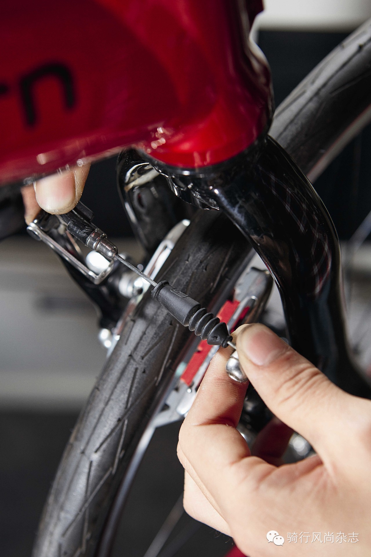 由于更换的刹车块一般厚度都会厚于旧刹车块,很容易出现蹭刹车的情况,这时就可能要重新调整刹线的长度以及刹车的角度。