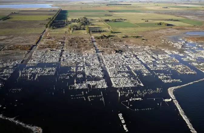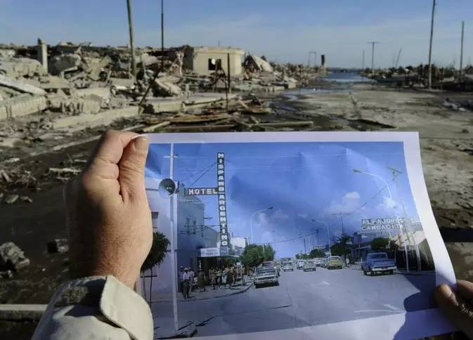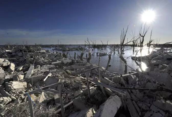 阿根廷布宜诺斯艾利斯省的一个城市Epecuén。在上个世纪70年代曾是个繁华的旅游城市,当地有5000个居民、近300个发展蓬勃的行业、每年数以万计的游客。然而在1985年11月10日,临近的湖泊Lago Epecuén堤坝崩塌,城市遭遇洪水泛滥、随后街道被水淹达四尺之高,而到了1993年,全城已在水底下10米。直到2009年水才慢慢退去,城市逐渐的展露出来,这个被淹没在水里25年的世界,到底变成了什么样子呢?