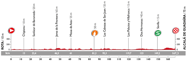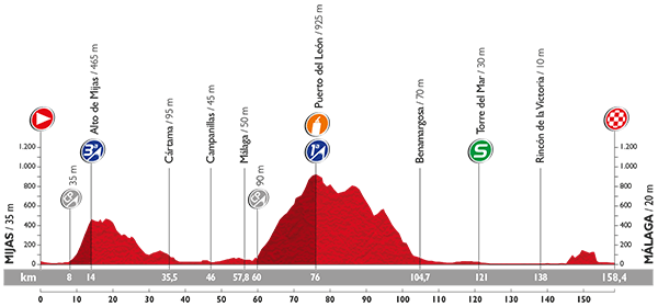 一个让冲刺选手摇头的一站。虽然赛事后段几乎一路平坦,然而横亘在中间的一级坡Puerto del León肯定会对他们造成影响。回到平地后,选手们也将要面连强劲海风的考验。
