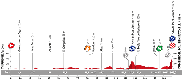 前面160多公里都堪称轻鬆,但是最后四公里的一级坡El Poble Nou de Benitatxell平均有9%,除了想抢单站的选手需要努力外,GC主将们也得加把劲,因为这里是个拉开秒差的好地点。
