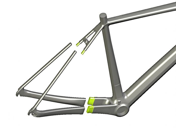 全车仅有四个接点,大幅减少车架重量并提高车身结构强度。不仅是轻量化,八角形下管在扁平处使用超高拉伸强化碳纤维,强化侧向刚性。前叉更植入Fuji SST车款的工字樑技术,提升车架硬度,并使指向更为精準。