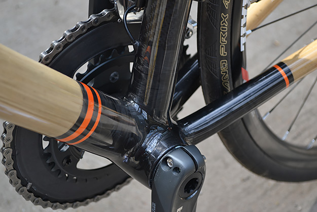 作为一款以竹子材料作为车架的单车,品牌方面对于竹子的选料也是极度苛求。他们并没有直接选用来自美国科罗拉多州或者科林斯堡的竹子进行车架制作,反倒是亲负越南选择了当地的铁竹进行打造。这种叫做铁竹的物料为车架所提供的竹子纤维可以与碳纤维相媲美,在给予单车轻量化车身的前提下也可以避免碳车在遇到强烈冲撞后遇到的碎裂现象。