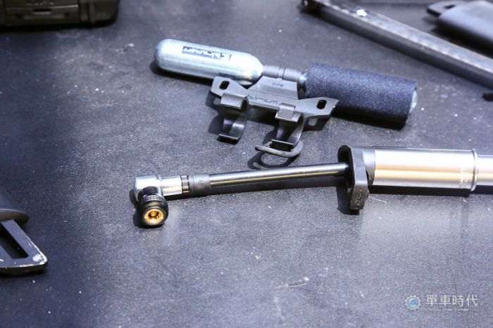 首先看到这款轻便打气桶Sheath-Apogee,整组还有加上2支气瓶的固定空间,如果车友们有使用CO2气瓶的话也可以一起带上。