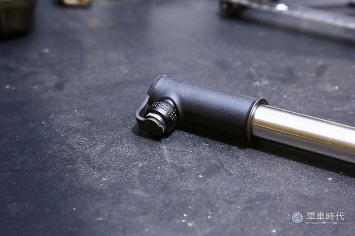 手动打气端这里可以将气嘴延伸,Birzman最特殊的地方就在于这个气嘴,拥有非常密合的气密功能、同时安装以及拔除都非常的简单容易。旋入式的气嘴,不用担心会压不住;另外要拔除的时候也只需要轻轻将气嘴往后扳,气嘴就会弹出来了。
