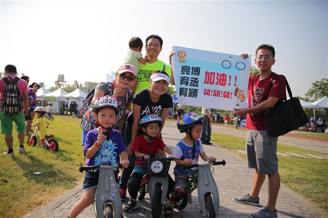 拿下Push Bike 3-4岁组冠军的是对双胞胎兄弟,高子棣平时热爱运动,而双胞胎哥哥高子棠却是个文静书生,妈妈雷秀慧特别带着一家大小从台北来参加。另一对双胞胎廖宥乔、廖宥婷接触Push Bike一年多,爸妈在週末带着小孩到公园练习,为体能补习,对小孩的动作发展能力很有帮助。5-6岁组,则由谢博丞夺冠。